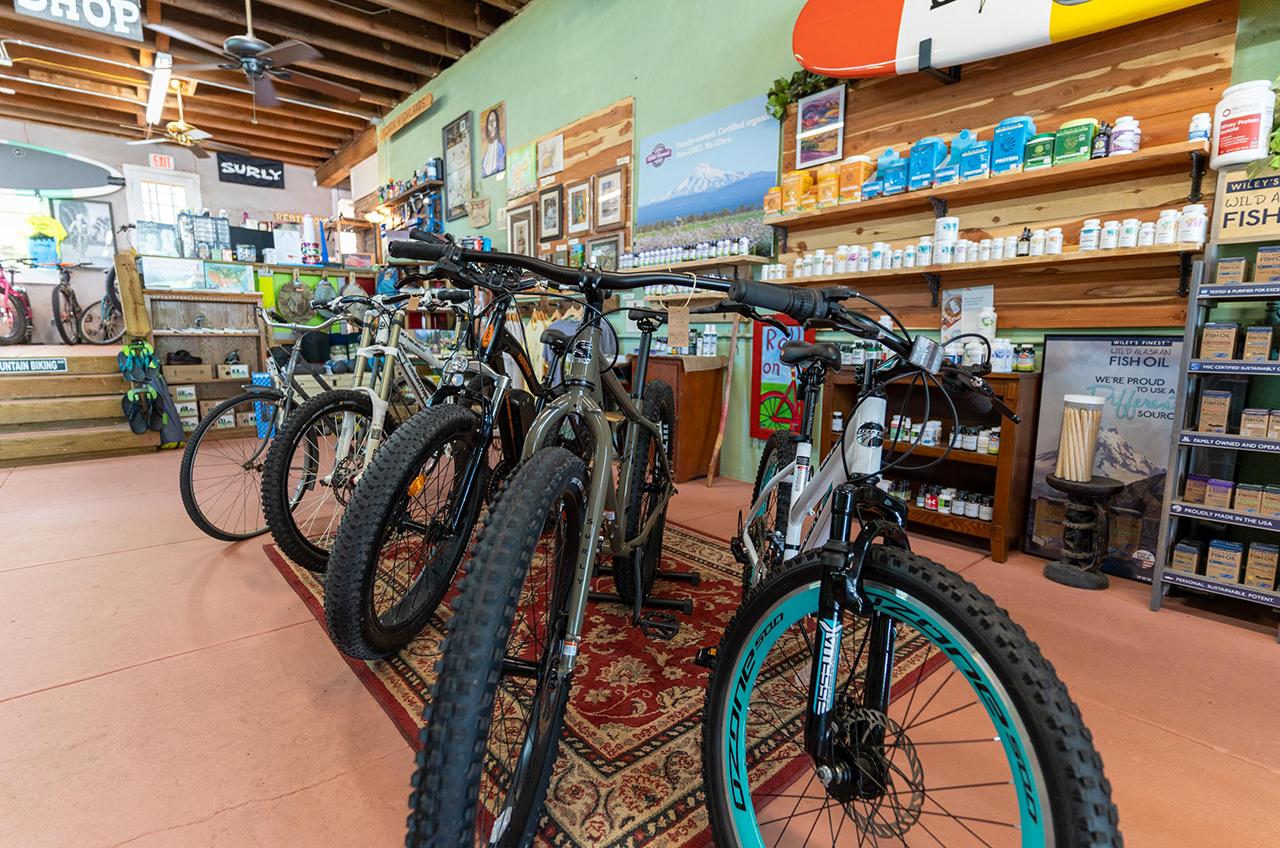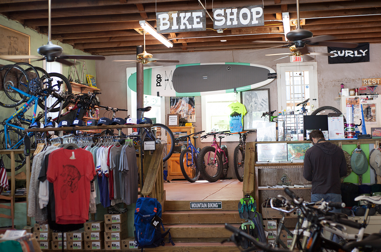 The front of the store hits all the sensory buttons. Hundreds of items including vitamins, supplements, hygeine products, foods and more line the shelves and surrounding walls. Camping and adventure gear is spread throughout, guiding you through the store. Half way through the store a nice selection of apparel is revealed. Hats, shirts, shoes and hand-crafted items can be found, and all for a great price and quality. Finally, as I work my way toward the back portion of NAS, I see the newest addition ...the bike shop!